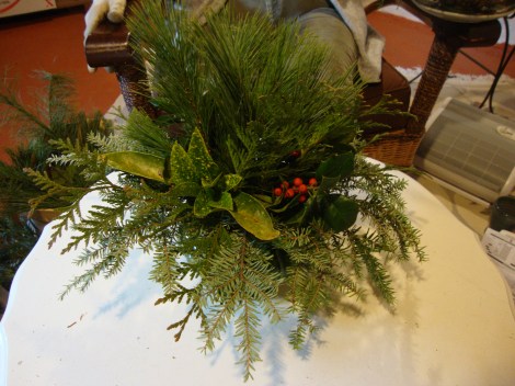 This was an arrangement of white pine and holly and other trimmings cut from my grandma’s yard.