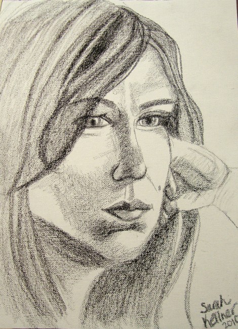 This is a portrait that I drew of one of my best friends, DZ. She didn’t have any drawing paper at her apartment so I used canvas paper and charcoal pencils, which is why it looks gritty. In some ways it feels like I drew a portrait of Jennifer Aniston, which is a nice compliment to DZ.