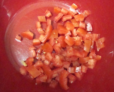Dice the tomatoes.