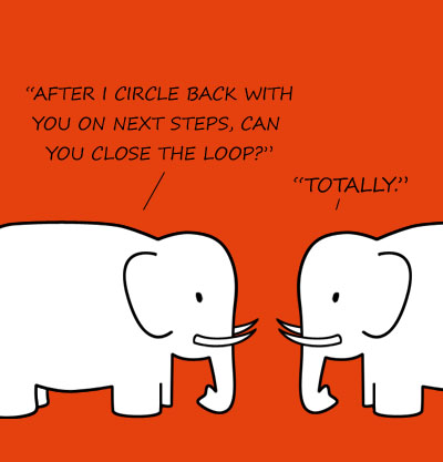 For more corporate jargon, check out the Douchey Account Guy Tumblr and Business Babble Translated to Human Speak on Hubspot.