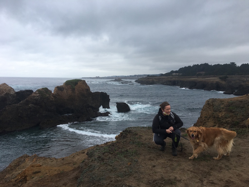 The next day, we loaded up in my friend’s truck and set out for adventures. First stop was a little Mendocino headland hike and a visit to the tide pools and scenic cliffs. Stella was wound up, so getting her to stop and pose for a picture was damn impossible.