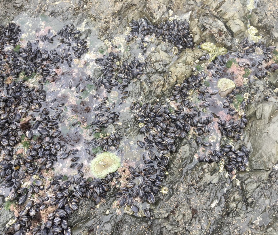 Then we climbed down to the tide pools to hunt for abalone shells, and to check out the mussels and sea urchins. I was slipping and sliding all over the rocks, but Stella was like a little mountain goat, bouncing along the path like she’d lived there her whole life. For her it was like a wet, rocky version of Discovery Zone.
