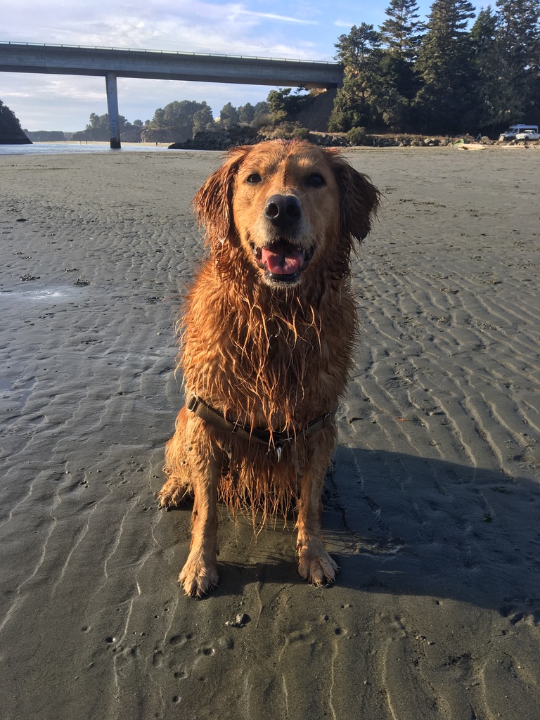 From there, we drove over to the local high school soccer field, where we had a picnic on the bleachers and I could play some frisbee with the pup. My friend and I tossed the frisbee around with Stella playing monkey in the middle, which she did happily until she caught on to the game, then she just plopped down and pouted for a brief moment, only to jump up and make a few interceptions (of course). What we didn’t realize until the end of the picnic was that Stella had been collecting these nasty little burrs in her fur at the soccer field. After a swim and some fetch at Little River Beach, she was in full on dreadlock mode (but so stinkin’ happy).